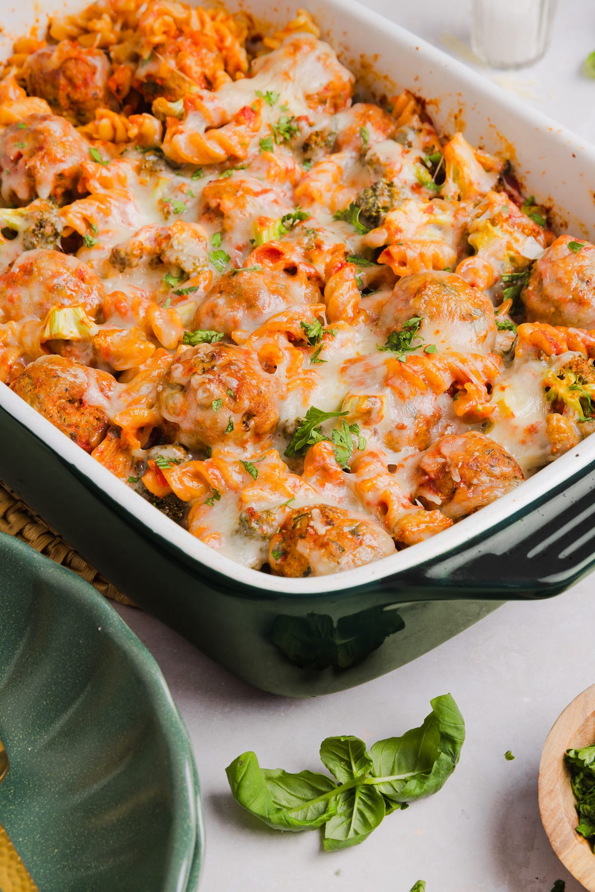 This is one of my favorite easy dinner recipes for busy nights when cooking feels like too much. It’s a hearty meal with tender pasta, juicy meatballs, and melty cheese all baked together in rich marinara. It’s cozy, satisfying, and couldn’t be easier. Save this one for the nights when you need dinner to practically make itself.